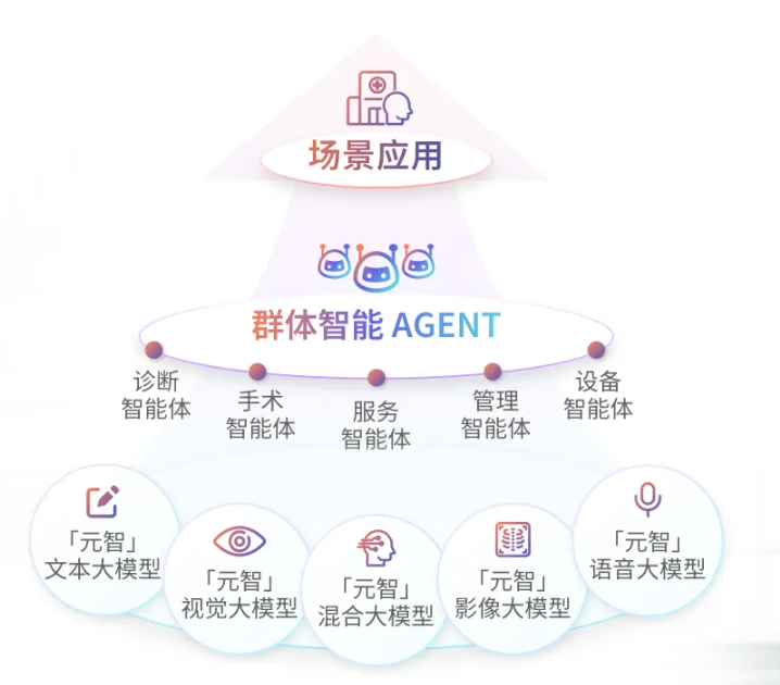 联影智能于2025年4月发布了联影「元智」医疗大模型,并在此基础上成功孕育出十余款医疗智能体。这些智能体广泛覆盖影像诊断、临床治疗、科研教学、医院管理、患者服务等多个场景,协同完成临床任务的感知、决策与执行。目前,联影智能的手术智能体分为外科手术智能体和介入手术智能体,在高度复杂且极需精准的手术中,联影智能便以两款手术智能体的「沉浸式智能」,赋能术前、术中、术后全流程。