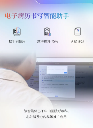 截至目前,电子病历智能体已部署至中山医院呼吸内科、心外科、心内科等多个临床科室,累计使用数千例,平均工作效率提升75%。