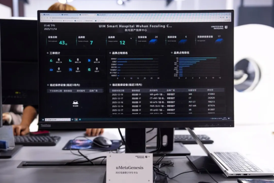 在运营领域,联影智能设备智能体聚焦设备全生命周期管理,支持对设备使用率、运维状态、科室资源配置等关键指标的可视化监控与深度效益分析。设备智能体帮助管理者及时识别运营风险,并支持运营策略优化和资源动态调整。通过智能交互与智能预警,该智能体推动设备运维从传统的「被动响应」转变为「主动干预」,实现精细化管理与资源使用效率最大化,为医院运营决策提供实时、准确的数据洞察。