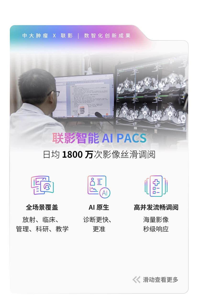 2025年12月28日的「智汇未来破局焕新」数智化融合创新前沿论坛上,AI PACS、智慧诊室、智慧病房等多款数智化成果重磅发布。其中,面对中大肿瘤影像业务所承载的巨大数据压力(日均超2TB的影像数据和2300份以上的报告总量),联影智能以「元智」医疗大模型为底座,携手中大肿瘤打造新一代AI PACS系统。该系统覆盖放射、临床、管理、科研、教学全场景,且原生融合26个AI应用与25款各病种结构化报告,显著提升放射诊断效率与一致性。目前,AI PACS系统已在中大肿瘤两个院区及一个体检中心实现全域部署。